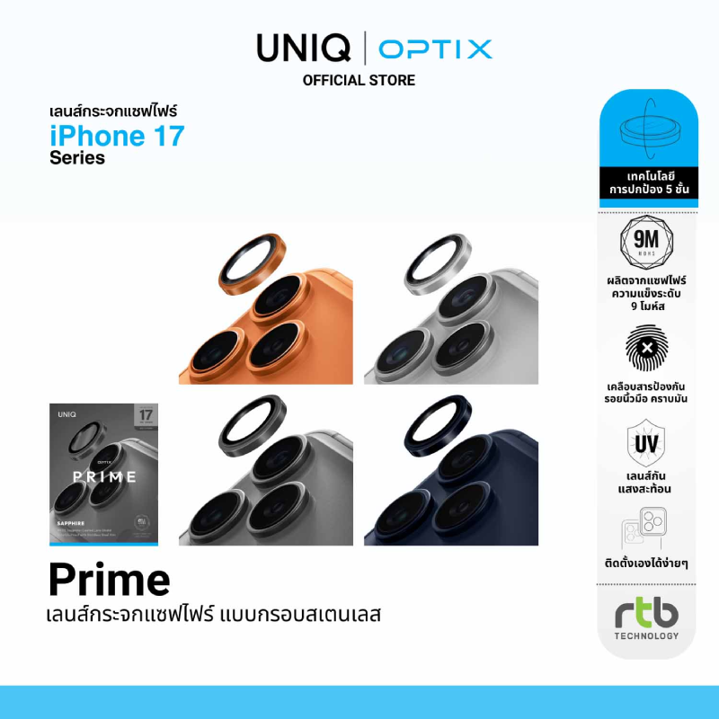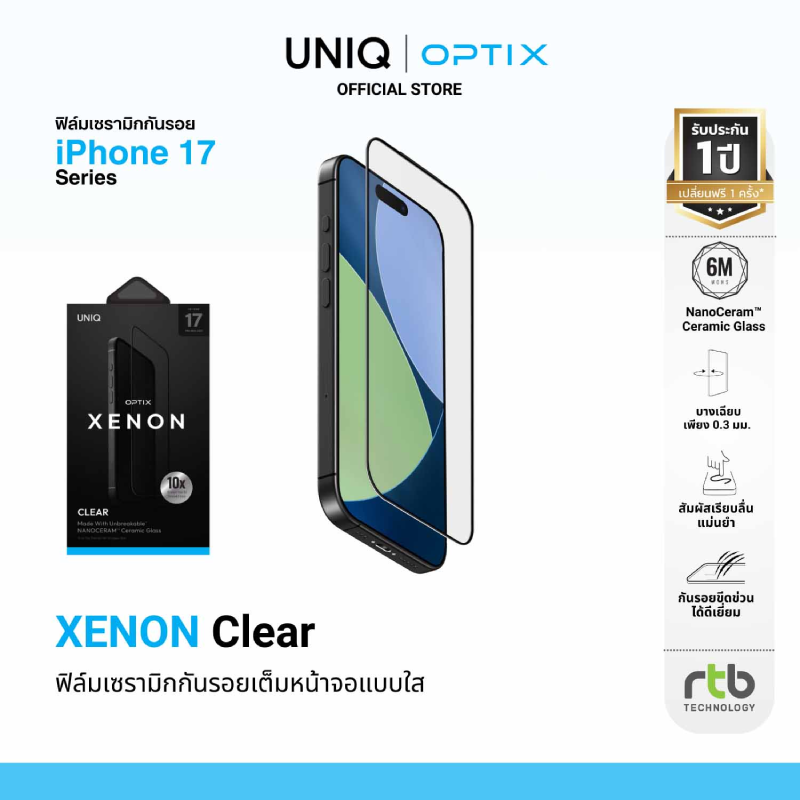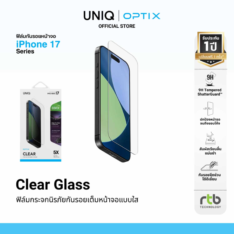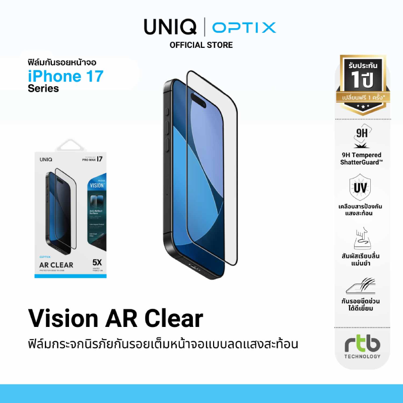 บริษัท อาร์ทีบี เทคโนโลยี จำกัด ผู้นำเข้าและจัดจำหน่ายสินค้าแกดเจ็ตรายใหญ่ในประเทศไทย ต้อนรับการมาถึงของ iPhone 17 Series อย่างเป็นทางการ ด้วยการเปิดตัวเคสกันกระแทกดีไซน์เหนือระดับจากแบรนด์ UNIQ และฟิล์มกระจกนิรภัยคุณภาพสูงจาก OPTIX ที่ออกแบบมาเพื่อปกป้องนวัตกรรมใหม่ของ iPhone 17 Series โดยเฉพาะ พร้อมจัดโปรโมชั่นสุดพิเศษ เอาใจแฟน ๆ ที่ซื้อเคสและฟิล์มกันรอยในช่วงเปิดตัว