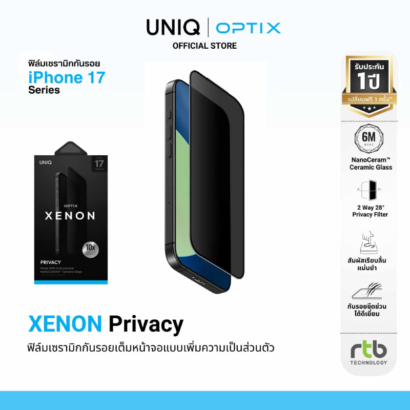 - Xenon Privacy ฟิล์มเซรามิกกันรอยเต็มหน้าจอแบบเพิ่มความเป็นส่วนตัว บางเพียง 0.3 มม. แข็งแรง ยืดหยุ่น และป้องกันการมองจากมุมด้านข้าง ราคา 2,390 บาท