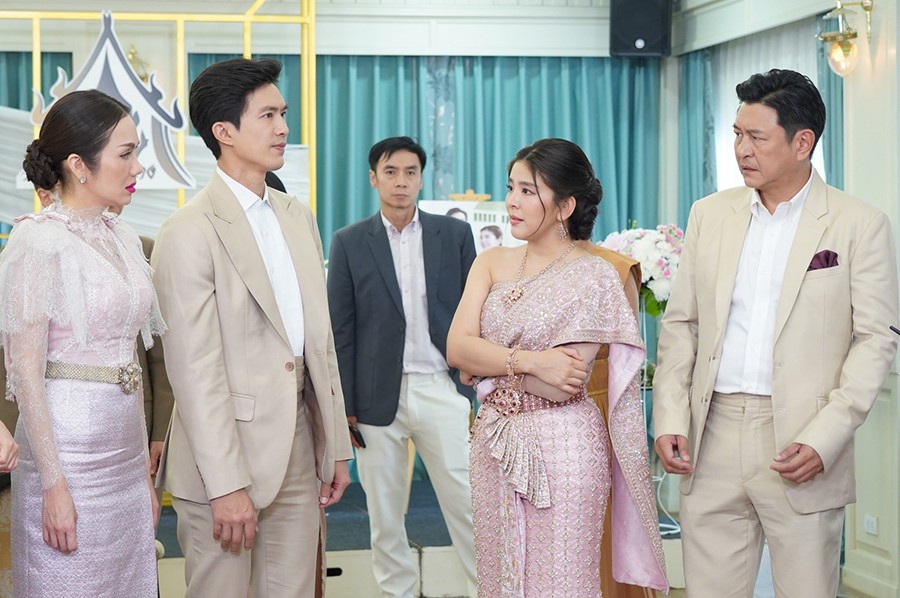 ฉากนี้เป็นอีกฉากที่กลายจุดพลิกผันในชีวิตของ ชฎาพลอย (หนูนา) จำเป็นต้องยอมแต่งงานกับ ราเมศ (ไผ่) ซึ่งแอบคบหาดูใจกับ ชฎาเพชร (นนนี่ ณัฐชา) น้องสาวคนเล็กในเรือนชฎานาง ความต้องการของผู้ใหญ่ทั้งสองฝ่าย จรัล (กบ) และ รัชพล (อ่ำ อัมรินทร์) วางแผนจัดงานแต่งแบบคลุมถุงชนที่ทำไปเพื่อประโยชน์ที่กำลังจะเกิดขึ้นในธุรกิจเรือนชฎานาง ท่ามกลางความยินดีของผู้คนที่มาอวยพรงานแต่ง ธรรม์ (นิว) กลับเต็มไปด้วยความผิดหวังเมื่อเห็นทั้งคู่ดูความสุข และยังเป็นห่วงอยู่ลึกๆ ซึ่งงานแต่งครั้งนี้มีแต่ขอบอกว่างานนี้มีแขกไม่ได้รับเชิญเพียบ
