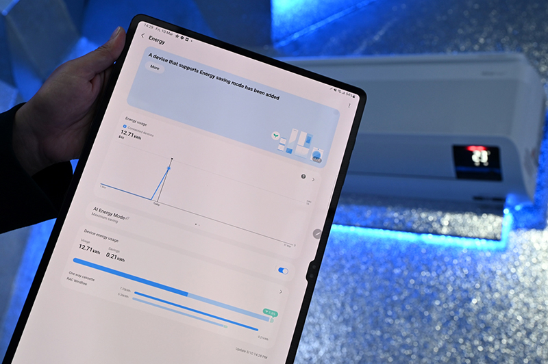 - AI Energy Mode เป็นโหมดประหยัดพลังงานอัจฉริยะ ที่ช่วยลดพลังงาน ช่วยตัดค่าไฟได้สูงสุดถึง 20% หนึ่งในฟีเจอร์บนแอป SmartThings ที่โหลดได้ทั้ง Android และ iOS โดยจะมี AI ที่คอยวิเคราะห์อากาศทั้งในและนอกห้อง เพื่อปรับความเย็นที่ใช่โดยอัตโนมัติ และยังสามารถเข้าไปตรวจสอบค่าไฟได้แบบ Real Time
