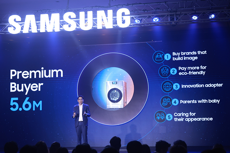 นอกจากนี้ยังพบว่า จากจำนวนผู้บริโภคสินค้าพรีเมี่ยม 5.6 ล้านคน [2] เป็นกลุ่มที่ให้ความสำคัญกับแบรนด์ที่ช่วยส่งเสริมภาพลักษณ์เป็นมิตรกับสิ่งแวดล้อม และมองหานวัตกรรมที่ตอบโจทย์ ซัมซุงจึงมุ่งมั่นนำเสนอและพัฒนาผลิตภัณฑ์ที่ตอบสนองทุกการใช้งาน ล่าสุดซัมซุงเปิดตัว Bespoke AI Laundry Combo™ ที่ได้ผสานเทคโนโลยี AI เพื่อมอบความสะดวกสบายให้กับผู้บริโภคในระดับพรีเมี่ยม สร้างนิยามของการซัก-อบผ้าแบบใหม่ที่ครบจบในเครื่องเดียวเป็นครั้งแรก