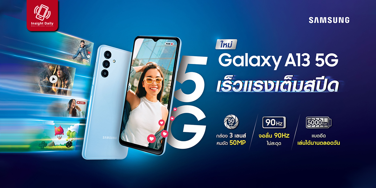 เปิดตัว Samsung Galaxy A13 5G มือถือ 5G รุ่นเริ่มต้นที่เร็วแรง สเปคสุดคุ้ม ในราคาที่ดีที่สุด! เพียง 6,999 บาท