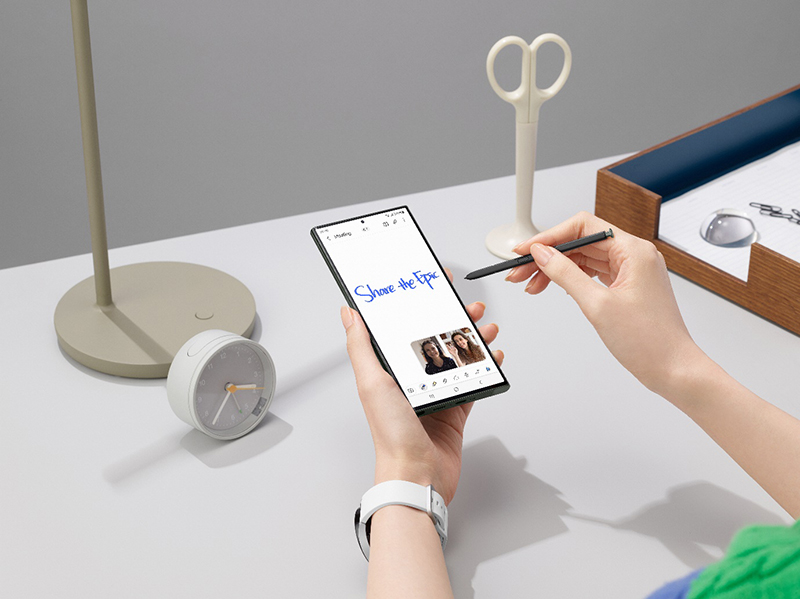แรงบันดาลใจเกิดขึ้นได้ทุกที่และทุกเวลา ไม่ว่าจะระหว่างการเดินทาง กำลังออกกำลังกาย หรือกำลังแฮงค์เอาท์กับเพื่อนตอนกลางคืน ก็สามารถจดบันทึกได้อย่างง่ายดายด้วย S Pen[3] ที่มาพร้อมกับ Galaxy S23 Ultra ที่ใช้ประโยชน์จากหน้าจอ Galaxy S23 Ultra ที่ใหญ่ถึง 6.8 นิ้วได้อย่างเต็มที่ ด้วยการร่างและวาดด้วยปากกา S Pen เขียนได้ลื่นไหลเพิ่มพลังความสร้างสรรค์ให้คุณได้ถ่ายทอดลงไปที่จออย่างเป็นธรรมชาติราวกับใช้ปากกาและกระดาษ