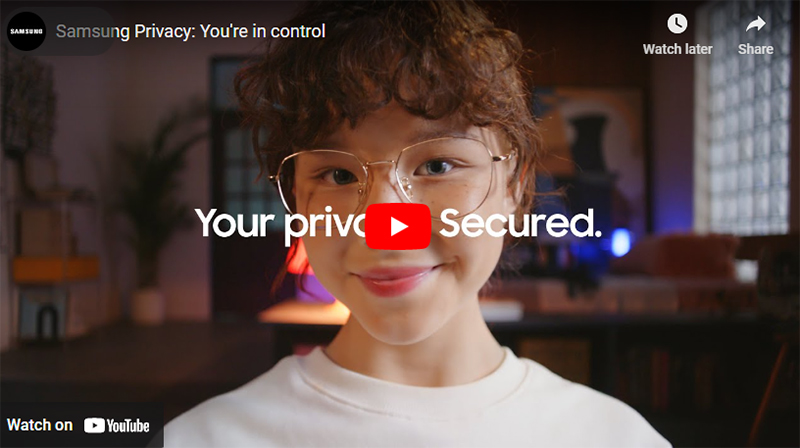 ซัมซุงเชื่อมั่นเสมอว่าความปลอดภัยและความเป็นส่วนตัวต้องพัฒนาอย่างต่อเนื่อง เพื่อให้ผู้ใช้ปลอดภัยและสามารถควบคุมการตั้งค่าต่างๆ ได้ขณะผู้ใช้ใช้อุปกรณ์ทำสิ่งต่างๆ ตลอดวัน
