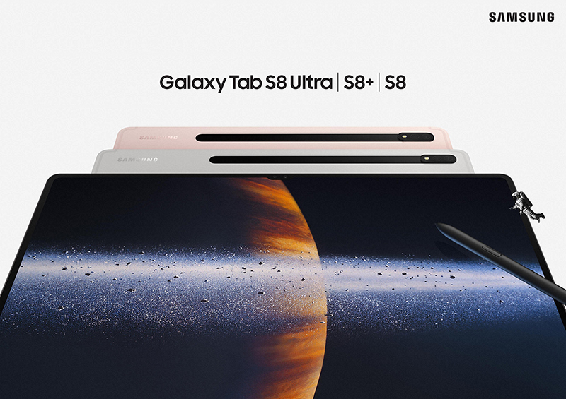 ซัมซุงประกาศเปิดตัวแท็บเล็ตรุ่นใหม่ล่าสุด อย่าง Galaxy Tab S8 series ที่มาพร้อมกับ 3 ตัวเลือกอย่าง Galaxy Tab S8 | S8+ | S8 Ultra โดย Tab S8 Ultra ถือเป็นแท็บเล็ตรุ่นแรกของ Galaxy Tab S ที่มีหน้าจอแสดงผลใหญ่ที่สุด และทรงประสิทธิภาพที่สุดเท่าที่เคยมีมา ด้วยฮาร์ดแวร์อันล้ำสมัย ฟีเจอร์สุดพรีเมียมเพื่อเพิ่มความโปรดักทีฟ รวมถึงการเชื่อมต่อผ่านกาแลคซี่ อีโคซิสเต็มได้อย่างไร้รอยต่อ ทำให้แท็บเล็ตเครื่องนี้พร้อมทำหน้าที่เป็นเพื่อนคู่คิดสมาร์ทบัดดี้คู่ใจไปพร้อมกับทุกคน บนโลกที่ไม่เคยหยุดนิ่งใบนี้