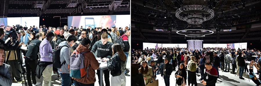 งาน Galaxy unpacked ได้รับความสนใจจากสื่อ อินฟลูเอนเซอร์ และแฟนๆ จากทั่วโลกที่ต่างพากันมารวมตัวกัน และมีโซน Galaxy S24 Experience zone ซึ่งบรรยากาศเต็มไปด้วยความตื่นเต้นที่ได้สัมผัสกับ Galaxy AI เป็นครั้งแรก