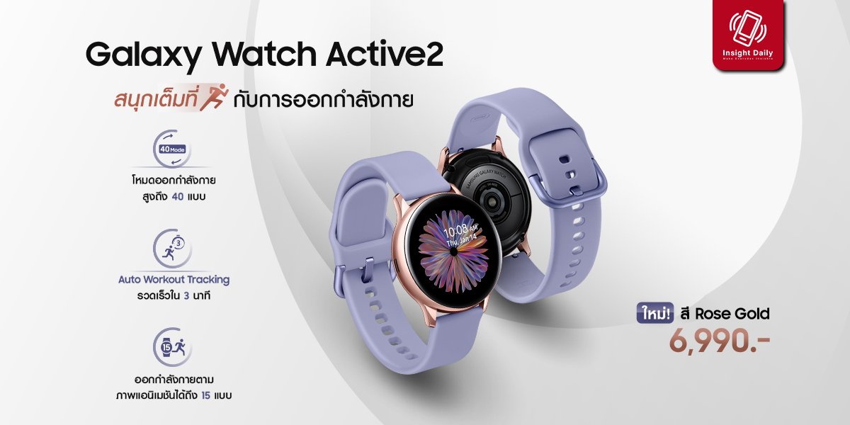 Samsung ขอแนะนำ Galaxy Watch Active2 เพื่อนคู่กายด้านไลฟ์สไตล์และสุขภาพที่แม่นยำกับสีสันใหม่ “Rose Gold” วางขายแล้วในราคาเพียง 6,990 บาท
