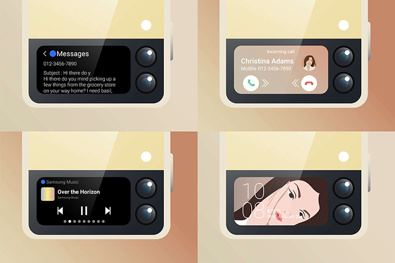นอกจากจะถ่ายรูปโดยไม่ต้องกางสมาร์ทโฟนแล้ว เจ้าจอ Cover Screen จิ๋วแต่แจ๋วขนาด 1.9 นิ้วด้านนอกยังทำอะไรได้อีกเยอะเพราะไม่ใช่แค่ดูการแจ้งเตือนที่เด้งขึ้นมาแบบธรรมดา แต่ยังสามารถกดอ่านข้อความแบบเต็มจากการแจ้งเตือนนั้นๆ ได้เลย พร้อมทั้งยังสามารถตอบข้อความด้วยการกดเลือกคำสั้นๆ ได้อีกด้วย เวลามีสายโทรเข้าก็กดรับหรือปฏิเสธผ่านจอ Cover Screen ได้ทันที รวมถึงควบคุมเพลงที่กำลังเล่น หรือแม้กระทั่งตั้งค่าหูฟัง Galaxy Buds ที่เชื่อมต่อกันโดยไม่ต้องกางหน้าจอ