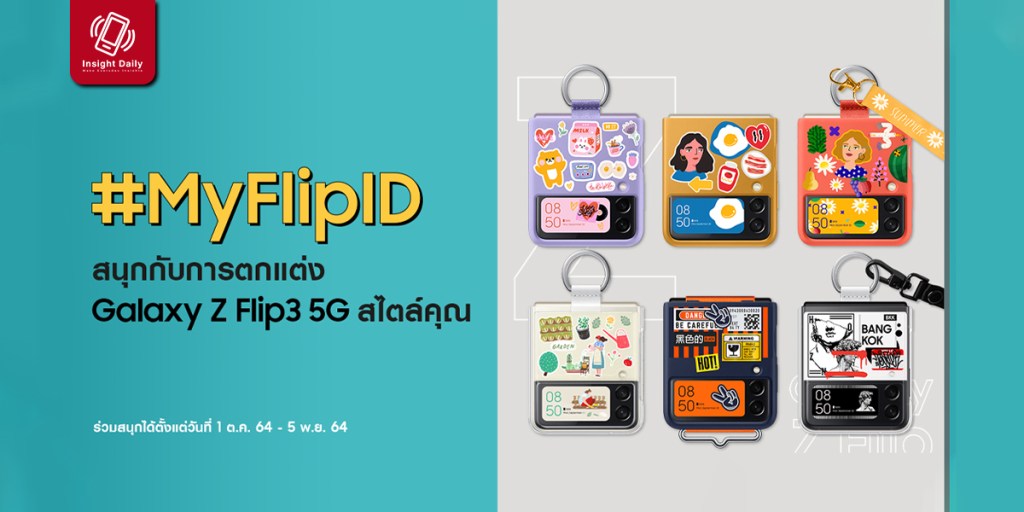 อย่ารอช้า! มาร่วมโชว์ Galaxy Z Flip3 5G ในแบบคุณได้แล้ว ตั้งแต่วันนี้ – 5 พฤศจิกายน 2564 พร้อมรอฟังผลรางวัลชนะเลิศได้ในวันที่ 12 พฤศจิกายน 2564 เวลา 18.00 น. ผ่าน Facebook Fan Page: Samsung Thailand หรือติดตามรายละเอียดเพิ่มเติมได้ที่ www.samsung.com/th/smartphones/galaxy-z-flip3-5g/myflipid-termandcondition