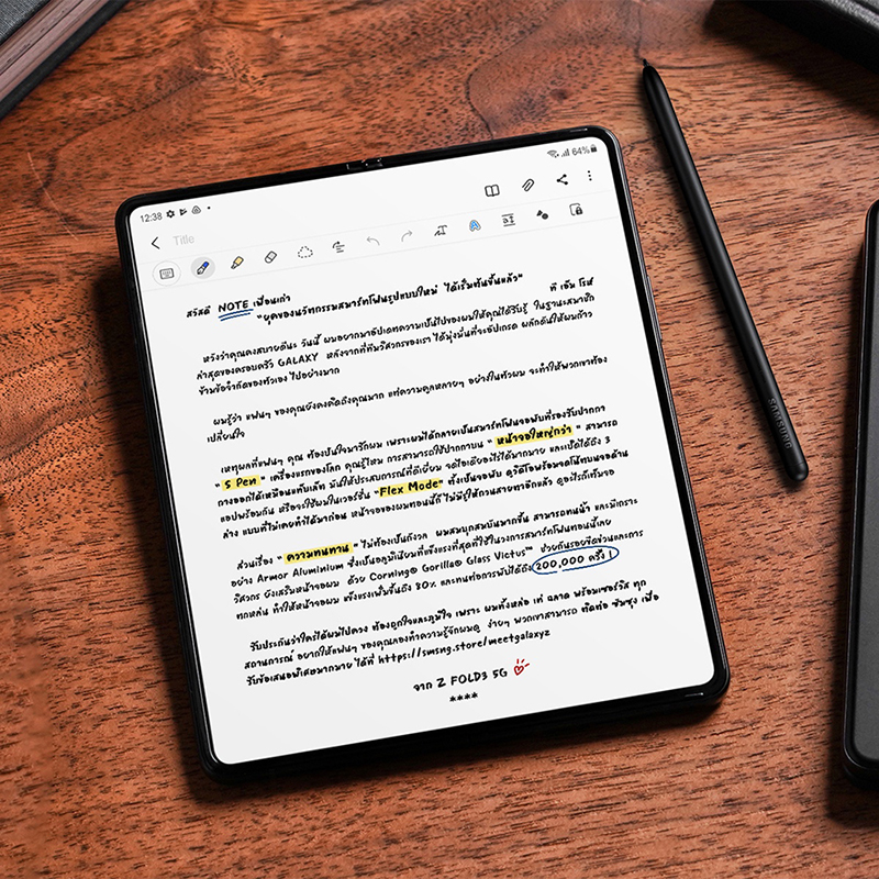 เหตุผลที่แฟนๆ คุณ ต้องปันใจมารักผม เพราะผมได้กลายเป็นสมาร์ทโฟนจอพับที่รองรับปากกา “S Pen” เครื่องแรกของโลก คุณรู้ไหม การสามารถใช้ปากกาบน “หน้าจอใหญ่กว่า” สามารถกางออกได้เหมือนแท็บเล็ต มันให้ประสบการณ์ที่ดีเยี่ยม จดไอเดียอะไรได้มากมาย และเปิดได้ถึง 3 แอปพร้อมกัน หรือจะใช้ผมในเวอร์ชั่น “Flex Mode” ตั้งเป็นจอพับ ดูวิดีโอพร้อมจดโน้ตบนจอด้านล่าง แบบที่ไม่เคยทำได้มาก่อน หน้าจอของผมตอนนี้ก็ ไม่มีรูให้กวนสายตาอีกแล้ว ดูอะไรก็เต็มจอ