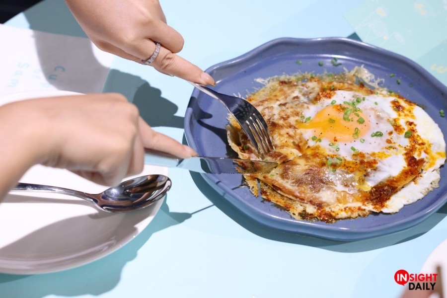 • Brie & Egg tortillas เมนูอาหารคาว แผ่นแป้งข้าวโพดเม็กซิกัน ท็อปด้วยไข่และ Brie Cheese ราดซอสเบคอน ผสม Chili oil และหมาล่า สไตล์ Asian twist เป็นเมนูพิเศษเฉพาะที่ Cup of Sam เท่านั้น