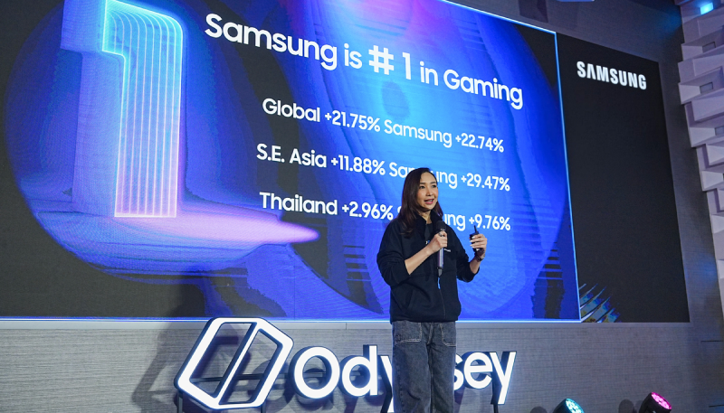 นางสาวอภิรดา พัวพรพงษ์ ผู้อำนวยการกลุ่มธุรกิจผลิตภัณฑ์จอภาพ กล่าวว่า ตลาดจอมอนิเตอร์พรีเมียมในประเทศไทยยังคงมีแนวโน้มเติบโตต่อเนื่อง แม้จะมีการแข่งขันสูง โดยในปีที่ผ่านมา ตลาดภาพรวมในประเทศไทยเติบโตขึ้น 2.96% ขณะที่ซัมซุงสามารถเติบโตได้ถึง 9.76% (ข้อมูลอ้างอิงจาก IDC 2025 Q1) ซึ่งเป็นผลจากความต้องการจอเกมมิ่งที่เพิ่มขึ้นอย่างเห็นได้ชัด ตามการเติบโตของอุตสาหกรรมเกม การสตรีมเกม และการแข่งขันอีสปอร์ตทั้งในไทยและภูมิภาคเอเชียตะวันออกเฉียงใต้ สอดคล้องกับพฤติกรรมผู้บริโภคที่ให้ความสำคัญกับประสบการณ์การเล่นเกมที่สมจริง ทำให้จอเกมมิ่งกลายเป็นส่วนหนึ่งของไลฟ์สไตล์และการแสดงออกถึงตัวตนของผู้ใช้งานยุคใหม่