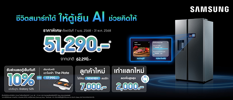 Samsung จัดใหญ่! เป็นเจ้าของ “ตู้เย็น Side by Side รุ่นใหม่ล่าสุด” พร้อมรับสิทธิพิเศษแบบจุใจได้แล้ววันนี้