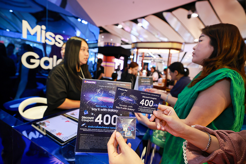 - ลูกค้าที่เข้าร่วมกิจกรรม ถ่าย – แชร์ – โพสต์ พร้อมติด #SayItwithGalaxy รับทันที! คูปองส่วนลดมูลค่า 400 บาท สำหรับการซื้อสินค้า Samsung ประเภทสมาร์ทโฟน แท็บเล็ต และอุปกรณ์สวมใส่ (นาฬิกา, หูฟัง, แหวน) รุ่นที่ร่วมรายการ มูลค่าขั้นต่ำ 10,000 บาท (ราคาหลังหักส่วนลดแล้ว) โดยคูปองสามารถใช้ได้เฉพาะที่ Samsung Experience Store สาขาเซ็นทรัลเวิลด์ สำหรับลูกค้า 250 ท่านแรก เท่านั้น
