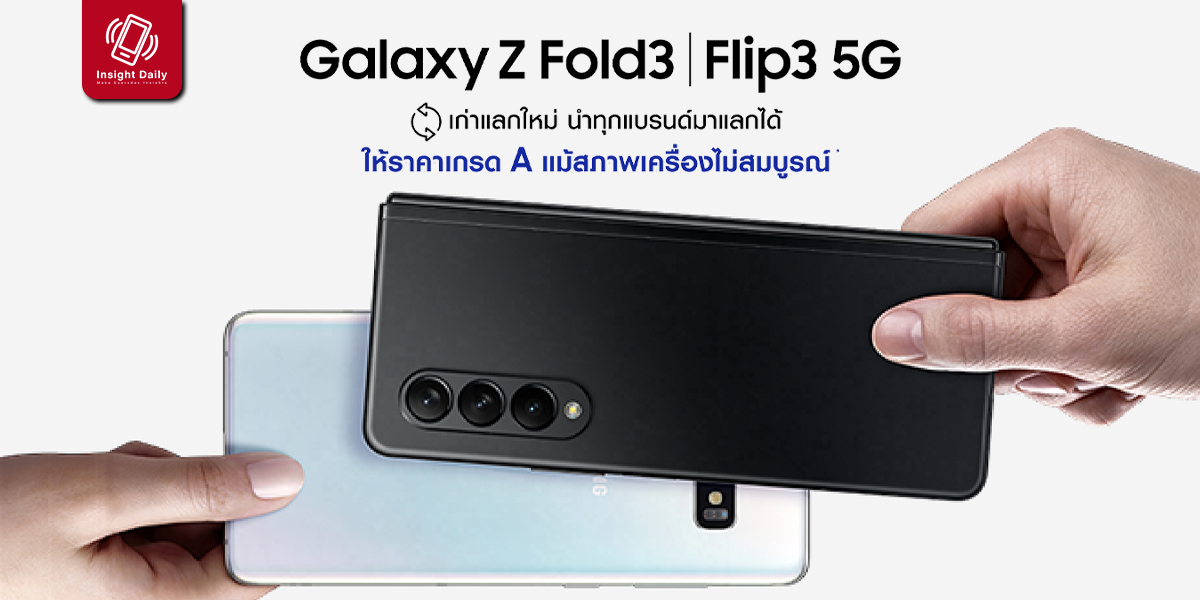 เก็บสมาร์ทโฟนเครื่องเก่าไว้ทำไม! ซัมซุงชวนนำเครื่องเก่าสูงสุด 3 เครื่องมาแลกเป็นส่วนลดในราคาเกรด A เพื่อซื้อสมาร์ทโฟนหน้าจอพับได้รุ่นใหม่ Galaxy Z Fold3 | Flip3 5G พร้อมคุ้มยิ่งกว่าคุ้ม! เมื่อจับคู่กับแคมเปญ First to Unfold เพิ่มสิทธิ์ในการรับเครื่องเป็นกลุ่มแรกของไทย พร้อมคูปองเงินสดมูลค่าสูงสุด 9,000 บาท และ Samsung Care+ 1 ปี มูลค่า 7,089 บาท