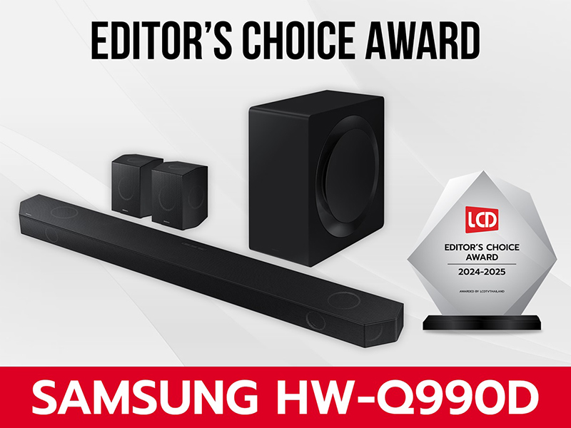 นอกจากนี้ ซัมซุง ยังคว้า 2 รางวัล ในกลุ่มผลิตภัณฑ์ซาวด์บาร์ ประกอบไปด้วย Samsung HW-Q990D ได้รับรางวัล Editor’s Choice Soundbar Award และ Samsung Ultra Slim Soundbar HW-S800D (สีดำ) / 801D (สีขาว) ได้รับรางวัล Best Value Soundbar Award