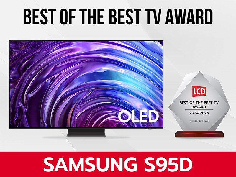 Samsung คว้า 6 รางวัล จาก Best of The Best TV Award จัดโดย LCDTVTHAILAND จากผลิตภัณฑ์ Samsung OLED S95D, Samsung S90D, Samsung QN900D, Samsung Q70D, Samsung HW-Q990D และ Samsung Ultra Slim Soundbar HW-S800D (สีดำ) / 801D (สีขาว) ตอกย้ำความมุ่งมั่นของซัมซุงในการพัฒนาผลิตภัณฑ์ที่ตอบโจทย์ความต้องการของผู้บริโภคอย่างแท้จริง