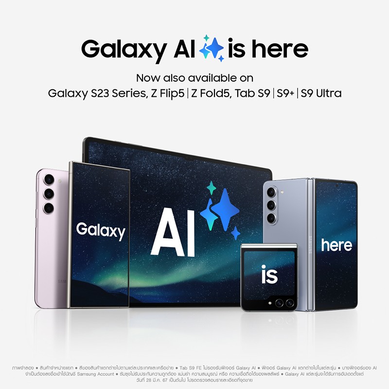 ซัมซุงจัดเต็ม ให้วาร์ปสู่ Galaxy AI ไปพร้อมๆ กันในรุ่น Galaxy S23 Series, Galaxy Z Flip5, Galaxy Z Fold5, Galaxy S23 FE, Galaxy Tab S9, Galaxy Tab S9+ และ Galaxy Tab S9 Ultra