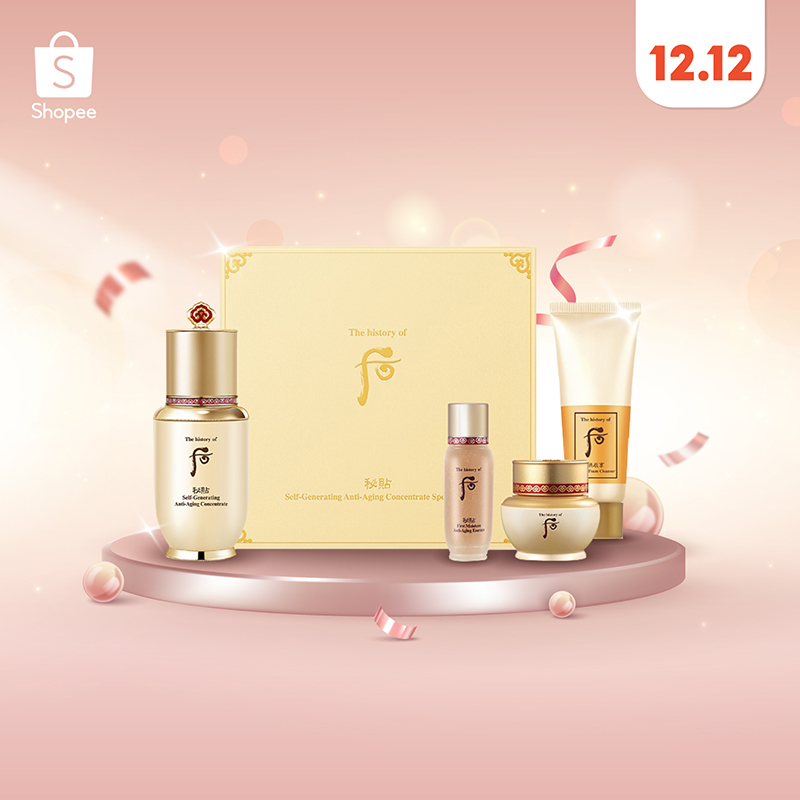 เดินตามรอยความงามในแบบฉบับของจักรพรรดินี ด้วยเซ็ตผลิตภัณฑ์ดูแลผิวหน้าสุดเลอค่าจากราชสำนักเกาหลี Bichup Self-Generating Anti-Aging Concentrate Trial Set ประกอบไปด้วย Bichup Self-Generating Anti-Aging Concentrate 30ml, Bichup Self-Generating Anti-Aging Essence 15ml, Bichup Ja Yoon Cream 8ml และ Gongjinhyang Facial Foam Cleanser 40ml เพิ่มความชุ่มชื้นและการยืดหยุ่นของผิว ช่วยฟื้นฟูผิวให้กลับมาอ่อนเยาว์ พร้อมเจิดจรัสราวกับจักรพรรดินีในราคาเพียง 3,500 บาท พร้อมรับส่วนลด 10% ทั้งร้านและโค้ดลดเพิ่ม 10% เฉพาะวันที่ 12 – 14 ธันวาคม 2565 เท่านั้น