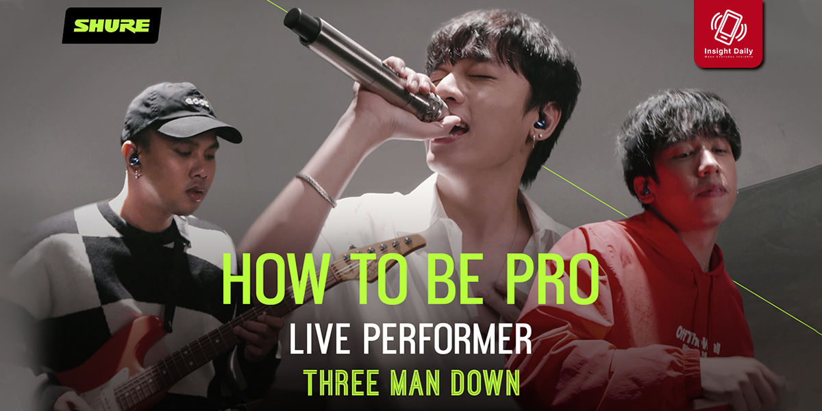 บริษัท มหาจักรดีเวลอปเมนท์ จำกัด กับโปรเจค How to be Pro มีโอกาสพูดคุยกับ น้องกิต-กฤตย์ จีรพัฒนานุวงศ์ (นักร้องนำ), น้องเต-เตธนันท์ วงศ์ปรีชาโชค (กลอง) และ น้องตูน-พีรพล เอี่ยมจำรัส (กีตาร์) วง Three Man Down วงดนตรีที่เดินสายประกวดมาตั้งแต่สมัยมหาวิทยาลัย สู่การเป็น Professional อย่างเต็มตัวในปัจจุบัน สร้างสรรผลงานให้เหล่าแฟนเพลงประทับใจมาแล้วหลากหลายท่วงทำนอง กว่าจะมาเป็น Three Man Down ก็ผ่านการชนะบ้าง แพ้บ้าง แต่การเดินทางของพวกเขาก็เติบโตมาพร้อมกับอุปกรณ์ของ Shure โดยเริ่มใช้เป็นตัวเริ่มต้นของนักดนตรีอย่าง Shure SE215 จนพัฒนาขึ้นมาเป็น Shure SE846, PSM300 และไมค์ KSM8 ที่น้องกิตใช้เป็นไมค์ประจำตัว พกพาไปในทุก ๆ เวที เรียกได้ว่าถ้าไม่มีอุปกรณ์ก็เล่นไม่ได้ การ Performance การ Set up, Sound Check หากมีอุปกรณ์ที่ดีและพร้อมก็ทำให้ Performance ออกมาดี