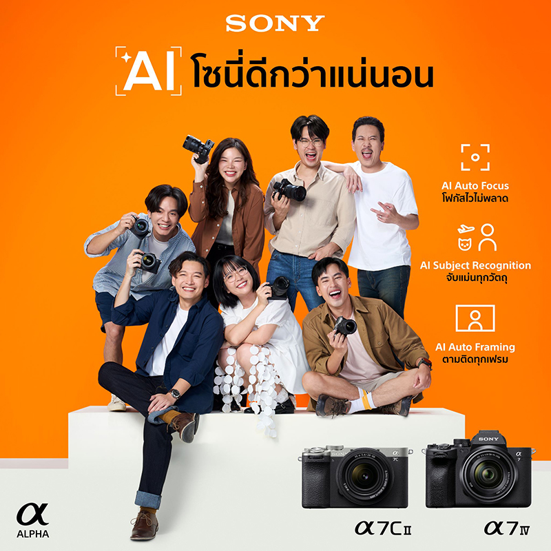 Sony ส่งแคมเปญ “AI โซนี่ดีกว่าแน่นอน” ดึง Content Creators แถวหน้า โชว์คอนเทนต์ด้วยเทคโนโลยี AI สุดล้ำผ่านกล้อง Alpha 7C II และ Alpha 7 IV