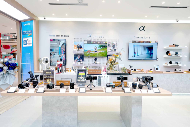 โซนี่ สโตร์ เซ็นทรัลเวิลด์ ถือเป็นสาขาแรกที่มาพร้อมพื้นที่จำลองการทำงานจริงของครีเอเตอร์ โดยมีการจัดแสดงเดโมการใช้งานกล้องและอุปกรณ์ต่าง ๆ ภายในระบบ Ecosystem อย่างครบครัน เสมือนลูกค้าได้จัดมุมไลฟ์สตรีมมิ่งหรือสร้างสรรค์วิดีโอในสถานการณ์จริง เพื่อให้ลูกค้าสามารถเห็นภาพการทำงานได้อย่างใกล้ชิด และตระหนักว่า แม้จะมีข้อจำกัดด้านพื้นที่ ก็สามารถเริ่มต้นเส้นทางการเป็นครีเอเตอร์ได้อย่างมืออาชีพ
