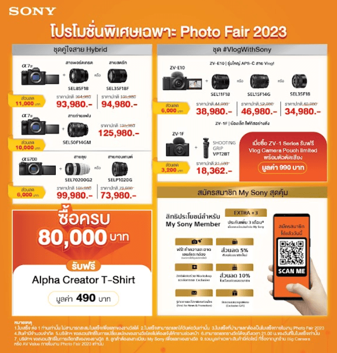 ภายในงานมีการจัดชุดโปรโมชั่นกล้องและเลนส์โซนี่ ดังนี้
