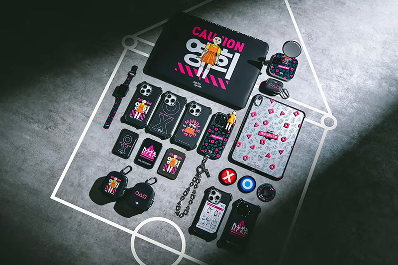 คอลเลกชัน Squid Game x CASETiFY ได้แรงบันดาลใจจากธีมที่น่าตื่นเต้นและเข้มข้นของซีรีส์ โดดเด่นด้วยสัญลักษณ์วงกลม สามเหลี่ยม และสี่เหลี่ยม ซึ่งเป็นตัวแทนของเรื่องราวที่น่าขนลุก ไฮไลท์สำคัญรวมถึง ฟิกเกอร์ 3D ตุ๊กตายองฮี พร้อมเคสพิมพ์ลายที่สะท้อนเอกลักษณ์ของตัวละครอันโดดเด่นและน่าขนลุกในซีรีส์ นอกจากนี้ ยังมีอุปกรณ์ Young-hee Doll Acrylic clip-on 2-in-1 Charger ที่ผสานฟังก์ชันการใช้งานเข้ากับองค์ประกอบการออกแบบที่เป็นเอกลักษณ์ของซีรีส์ได้อย่างลงตัว