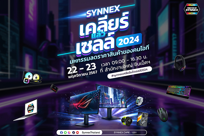 “SYNNEX เคลียร์แล้วเซลล์ 2024” มหกรรมลดราคาสินค้าไอที ลดสูงสุดถึง 70% ที่ซินเน็ค (สำนักงานใหญ่) 22 – 23 พ.ย. นี้