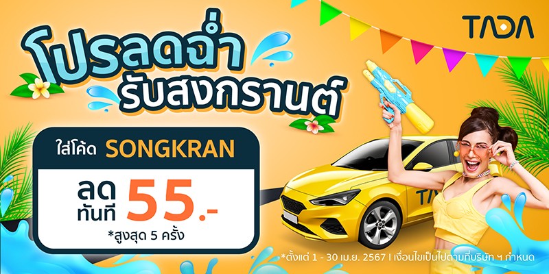 เพื่อรองรับการขยายพื้นที่ให้บริการ TADA นำเสนอโปรโมชั่นสงกรานต์สุดพิเศษสำหรับผู้ใช้แพลตฟอร์ม TADA ทุกราย โดยรับส่วนลดสูงสุด 55 บาท เมื่อใช้บริการ TADA โดยใส่โค้ด ‘SONGKRAN’ ผู้โดยสารสามารถแลกรับส่วนลด 55 บาท เพื่อใช้สำหรับการเดินทางต่อครั้ง รวมสูงสุดห้าเที่ยว ครอบคลุมบริการรับส่งสนามบินทั้งไปและกลับ ผู้ใช้สามารถเพลิดเพลินกับส่วนลด 33% โดยใส่โค้ด ‘FLY33’ โดยเริ่มใช้โปรโมชั่นดังกล่าวได้ตั้งแต่วันนี้ถึง 21 เมษายน 2567