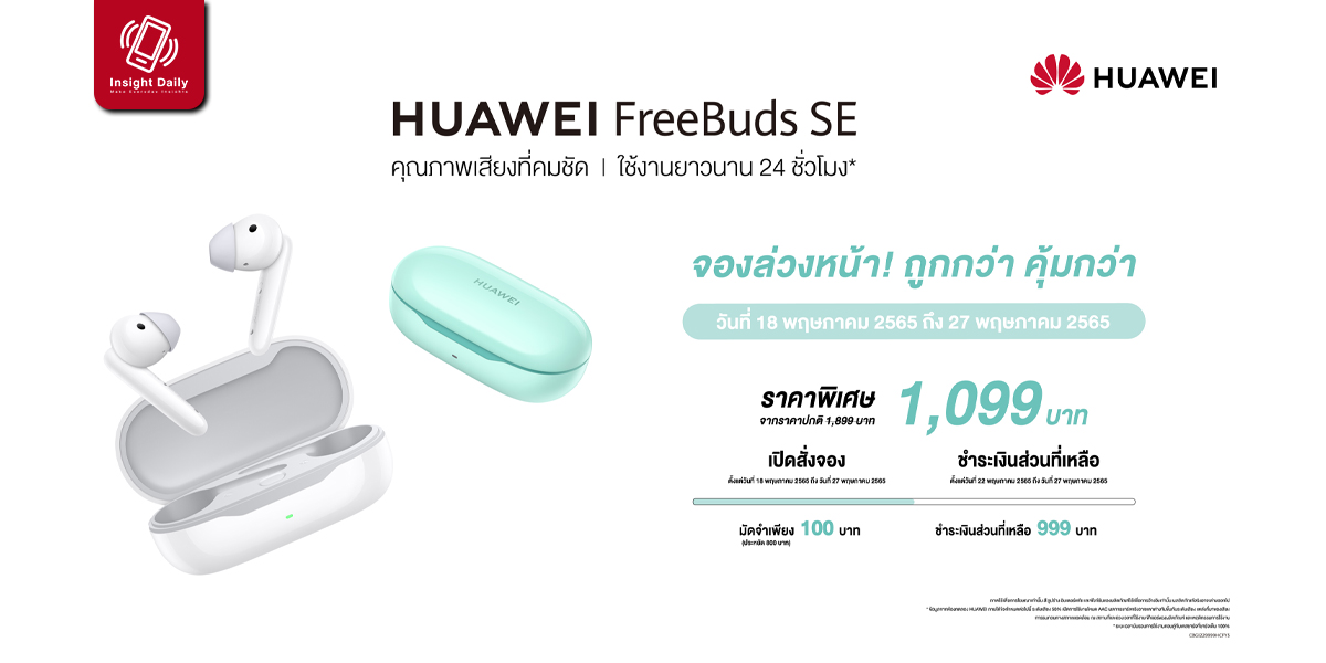 INSIGHT NEWS หูฟังไร้สายรุ่นใหม่ HUAWEI FreeBuds SE เป็นเจ้าของได้ในราคาพิเศษเพียง 1,099 บาท* พ.ค. 17, 2022 Insight Her หัวเว่ย คอนซ&# Read More