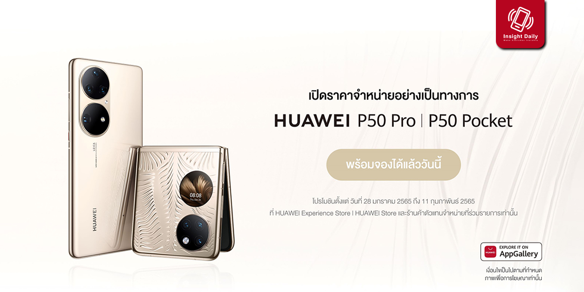 INSIGHT NEWS เปิดราคาไทย HUAWEI P50 Pro และ HUAWEI P50 Pocket รับศักราชใหม่แห่งการถ่ายภาพ ม.ค. 28, 2022 Insight Her หัวเว่ยประเ Read More