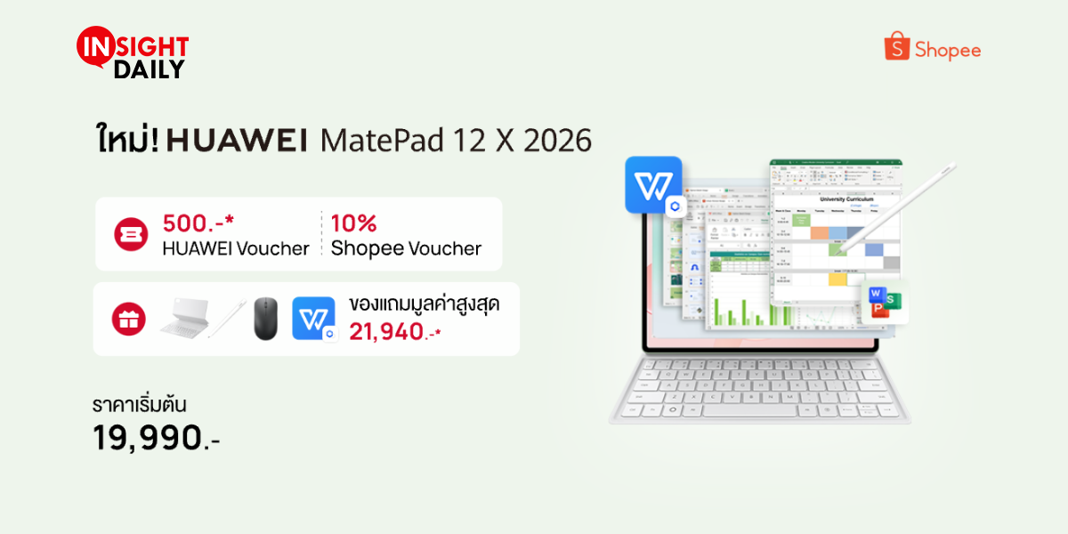 โปรแรงบน Shopee กับ HUAWEI FreeClip 2 เริ่มต้นเพียง 4,990 บาท พร้อมรับคูปองส่วนลดสูงสุด 25%