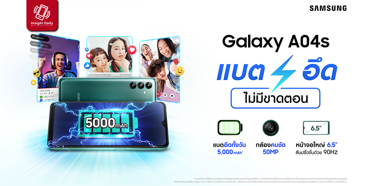 เปิดตัว Samsung Galaxy A04s สมาร์ทโฟนสเปคเทพ มาพร้อมแบตเตอรี่อึด กล้องสวย ในราคาเบาเพียง 4,999 บาท!