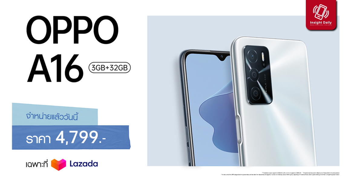 INSIGHT NEWS OPPO A16 รุ่น RAM 4GB + ROM 64GB วางจำหน่ายแล้ววันนี้ ในราคา 5,699 บาท ก.ย. 21, 2021 Insight Her วางจำหน่ายแ Read More