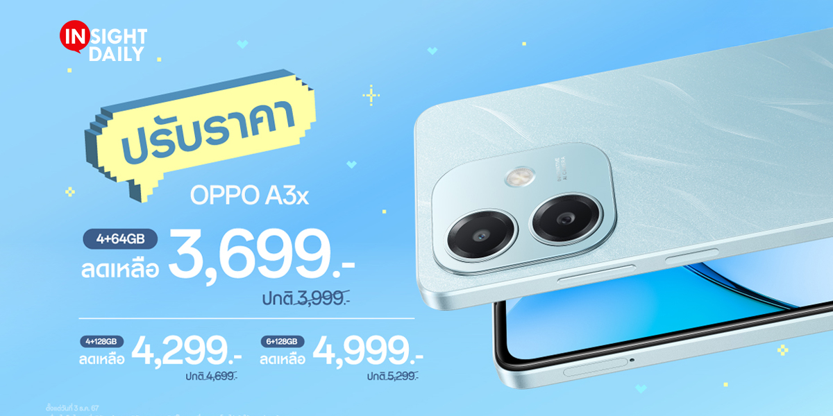 TECHINSIGHT NEWSMOBILE OPPO A3x สมาร์ตโฟนเอาใจสายโหด มาในราคาใหม่สุดคุ้มค่า เริ่มต้นเพียง 3,699 บาท เท่านั้น! ธ.ค. 4, 2024 Insight Her OPPO A3x สมาร์ตโฟนส& Read More