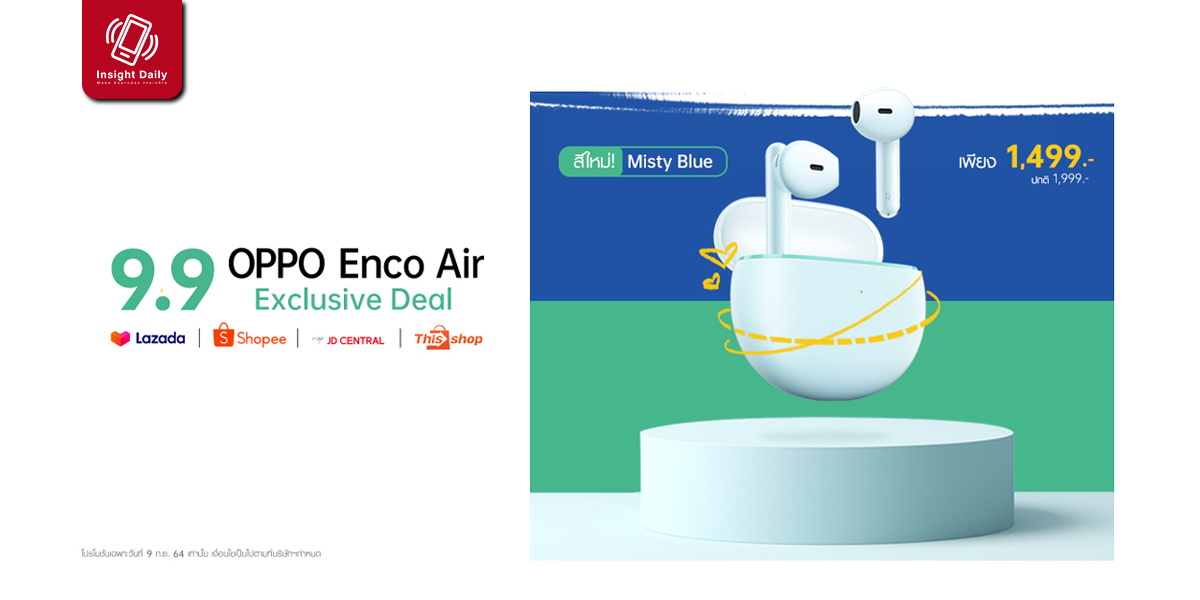 INSIGHT NEWS พบกับ OPPO Enco Air สีใหม่! Misty Blue เป็นเจ้าของได้แล้ววันนี้ กับโปรโมชันพิเศษเหลือเพียง 1,499 บาท ก.ย. 8, 2021 Insight Her OPPO ประกาศวางจū Read More