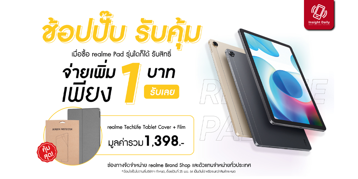 INSIGHT NEWS โปรพิเศษสุดปัง “ช้อปปั๊บ รับคุ้ม” ซื้อ realme Pad ทุกรุ่น เพิ่มเงิน 1 บาท รับเคสสุดหรูและฟิลม์กันรอย พ.ย. 28, 2021 Insight Her realme Pad กระแสดีเกิ Read More