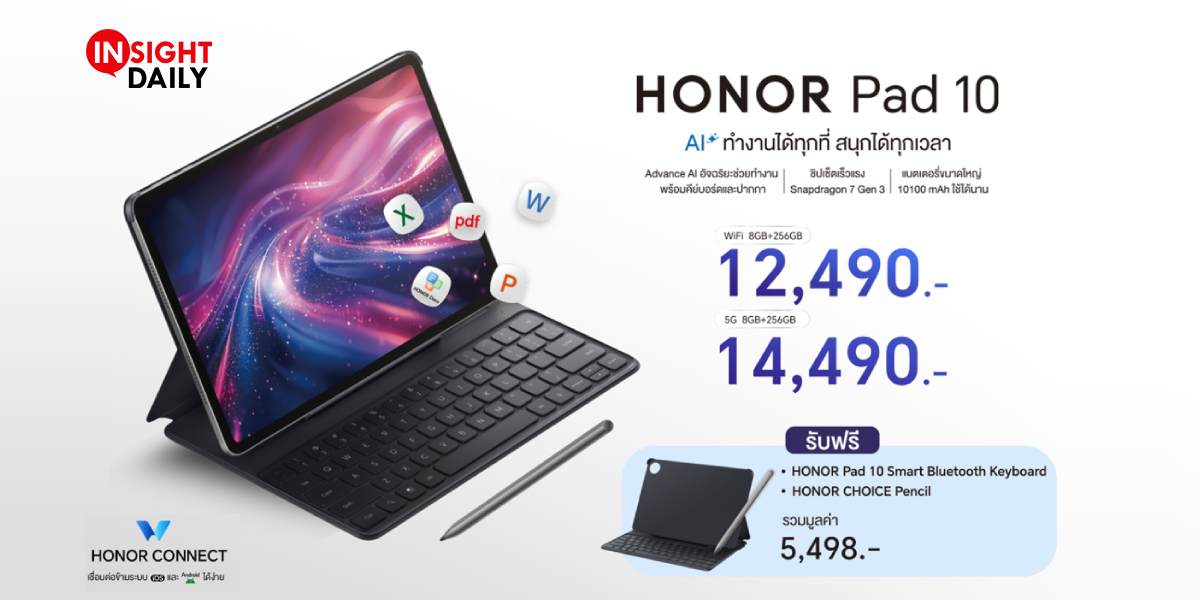 เปิดตัว HONOR Pad 10 แท็บเล็ตสุดคุ้ม ยกระดับการทำงานและเรียน ราคาเริ่มต้น 12,490 บาท
