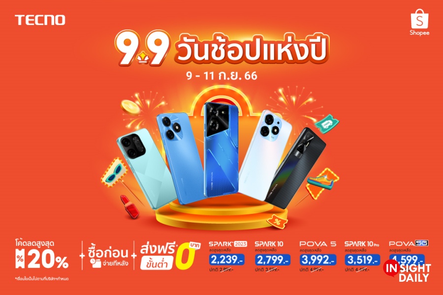 เทคโน ประเทศไทย เอาใจคำเรียกร้องจากแฟน ๆ เตรียมพาพายุลูกใหม่ POVA 5 สี Hurricane Blue มาเสริมทัพหลังจากที่ได้รับกระแสตอบรับอย่างล้นหลาม เปิดตัว 9 ก.ย. 66 ให้เป็นเจ้าของได้ในราคาที่พิเศษยิ่งกว่าเดิมกับโปรโมชั่น 9.9 วันช้อปแห่งปี บนช่องทาง Shopee Mall