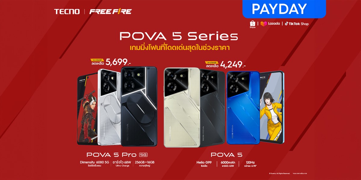 TECNO POVA 5 และ POVA 5 Pro ส่งดีลเดือดรับ Payday เป็นเจ้าของได้ในราคาเริ่มต้นเพียง 4,249 บาท เท่านั้น!