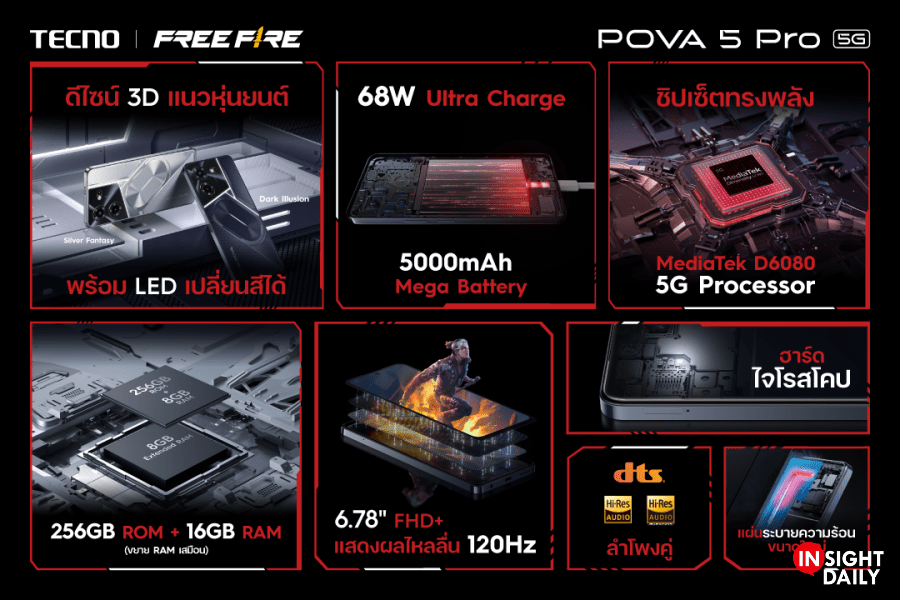 เปิดตัว TECNO POVA 5 Pro 5G ขุมพลัง Dimensity 6080 5G รองรับ Bypass Charge ชารจ์ไว 68W