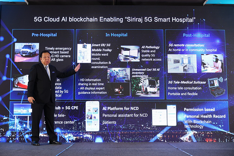 โดยก่อนหน้านี้ ทางโรงพยาบาลศิริราชได้ร่วมมือกับสำนักงาน กสทช. และบริษัท หัวเว่ย เทคโนโลยี่ (ประเทศไทย) จํากัด เพื่อดำเนิน “โครงการต้นแบบโรงพยาบาลอัจฉริยะด้วยเทคโนโลยีเครือข่าย 5G และระบบปัญญาประดิษฐ์” ในการเพิ่มประสิทธิภาพการทำงานของโรงพยาบาลด้วยการนำเทคโนโลยี 5G รวมทั้งคลาวด์ AI และเทคโนโลยีดิจิทัลมาใช้ประโยชน์ เพิ่มความสะดวกในการเข้าถึงบริการ เพิ่มประสิทธิภาพและความปลอดภัยในการรักษาพยาบาล ช่วยให้คนในพื้นที่ห่างไกลเข้าถึงการบริการในโรงพยาบาลตติยภูมิชั้นสูงได้ ซึ่งหัวเว่ยมีความมุ่งมั่นในการร่วมพัฒนานวัตกรรมโซลูชันด้วยเทคโนโลยี 5G และคลาวด์ ในการเสริมศักยภาพให้แก่ภาคสาธารณสุขไทย และช่วยผลักดันโรงพยาบาลศิริราชให้เป็นต้นแบบโรงพยาบาลอัจฉริยะแห่งแรกของไทยที่มีมาตรฐานระดับโลกในอนาคต