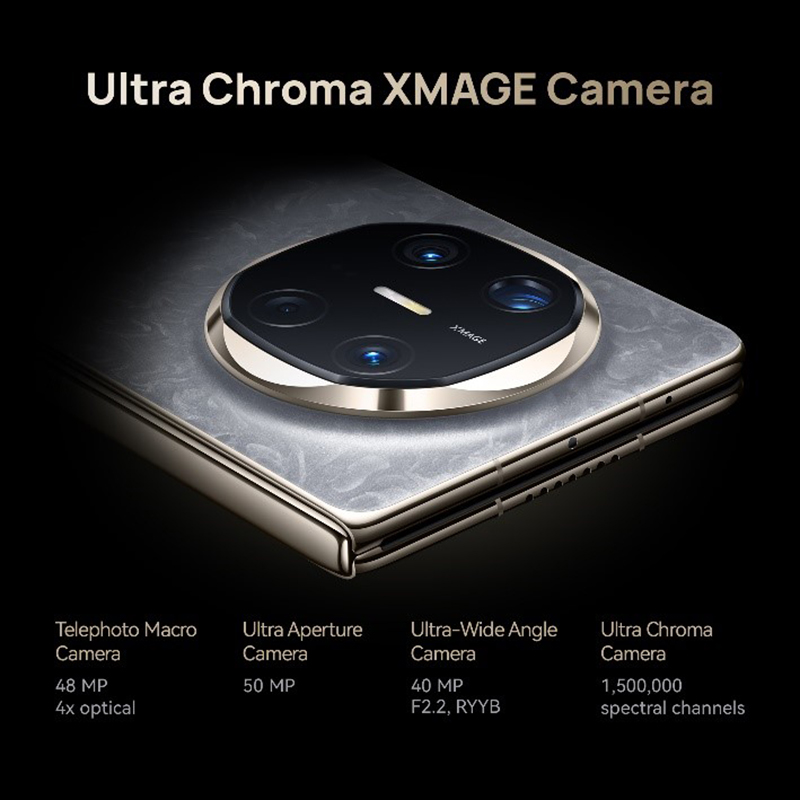 HUAWEI Mate X6 ได้สร้างมาตรฐานใหม่ในตลาดสมาร์ทโฟนพับได้ โดยผสานความสามารถอันทรงพลังของกล้อง Ultra Aperture XMAGE ที่ผสานจุดแข็งของเลนส์หลายตัวเข้าด้วยกัน ได้แก่ กล้อง Ultra Aperture 50 MP ที่มีรูรับแสงปรับได้ตั้งแต่ 1.4 ถึง F4.0 กล้องเทเลโฟโต้ไมโคร 48 MP พร้อมซูมออปติคอล 4 เท่าและซูเปอร์มาโคร 5 ซม. และสุดท้ายคือกล้องมุมกว้างพิเศษ 40 MP ที่มีรูรับแสงสูงสุด F2.2 กล้อง Ultra Chroma ใหม่นี้ให้การจับภาพสีที่แม่นยำและสร้างเอฟเฟกต์ “สิ่งที่คุณถ่ายคือสิ่งที่คุณเห็น” มีการพัฒนาช่องสเปกตรัมถึง 1.50 ล้านช่อง ทำให้สามารถวัดสเปกตรัมแบบหลายจุดได้ในระดับ “ภาพ” ด้วยเครื่องสเปกโตรมิเตอร์สำหรับการถ่ายภาพ โดยความแม่นยำของสีดีขึ้นถึง 120% กล้องรุ่นนี้สามารถรวบรวมข้อมูลเกี่ยวกับฉากสิ่งแวดล้อมได้มากขึ้นโดยอิงจากลักษณะสเปกตรัม และสามารถจับภาพและคืนค่าสีผิว สีเสื้อผ้า และสีธรรมชาติของผู้คนได้อย่างแม่นยำ นอกจากนี้กล้องหลักรูรับแสงขนาดใหญ่พิเศษและอัลกอริทึมซอฟต์แวร์ร่วมกันช่วยให้ผู้ใช้สามารถจับภาพช่วงเวลาที่เร็วที่สุดในชีวิตได้ด้วยฟีเจอร์ Ultra Speed Snapshot สามารถหยุดภาพวัตถุที่เคลื่อนไหวด้วยความเร็ว 300 กม./ชม. และบันทึกช่วงเวลาอันรวดเร็วราวสายฟ้าแลบ ไม่ว่าจะเป็นรถแข่งที่วิ่งด้วยความเร็วสูงหรือรถไฟแม่เหล็กความเร็วสูง ก็สามารถจับภาพวัตถุที่เคลื่อนไหวได้อย่างชัดเจน