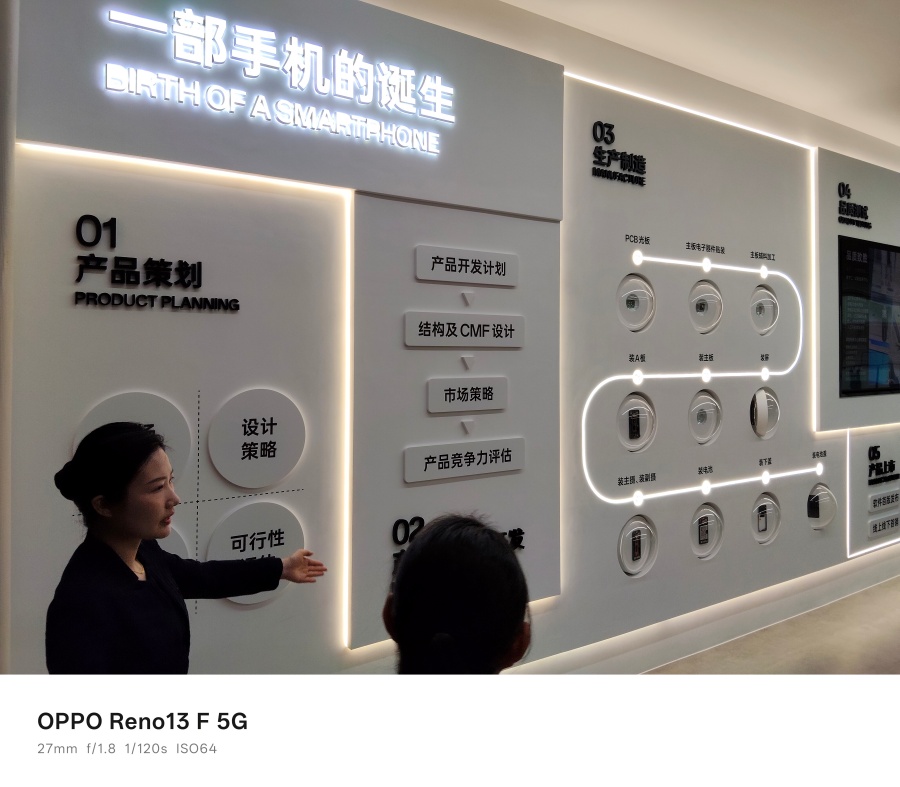ในการเดินชมด้านในโรงงานจะมีพื้นที่ที่จัดแสดงบริบทของวัฒนธรรมองค์กร OPPO ด้วยครับ ซึ่งพื้นที่ตรงนี้จะแสดงข้อมูลเกี่ยวกับศูนย์การผลิตทั้งหมด 9 แห่งทั่วโลก ของ OPPO โดยที่โรงงานเขตอุตสาหกรรม ฉงชิ่ง จะเป็น ฐานการผลิตที่ใหญ่ที่สุด ของ OPPO