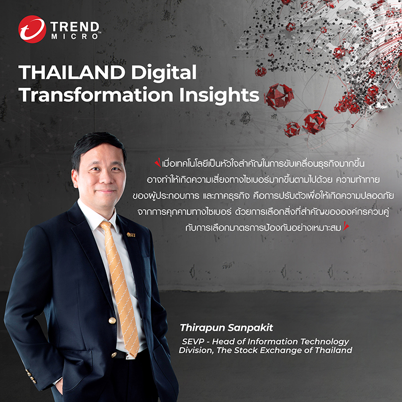 ปิยธิดา ตันตระกูล ผู้จัดการประจำประเทศไทย บริษัท เทรนด์ไมโคร (ประเทศไทย) จำกัด กล่าวในงาน Thailand Digital Transformation Insights for BFSI Business เมื่อเร็วๆ นี้ ซึ่งเป็นงานสัมมนาที่จัดขึ้นให้กับกลุ่มองค์กรธุรกิจด้านการเงินการธนาคารและการประกัน เพื่อถ่ายทอดวิสัยทัศน์ ภาพรวมและมุมมองเชิงลึกเกี่ยวกับภัยคุกคาม ที่มีต่อธุรกิจภาคการเงินและการธนาคาร โดยปัจจุบันนับเป็นช่วงเวลาที่ทุกคนและทุกองค์กรนั้นต้องคำนึงถึงและมองเห็นภาพของการเปลี่ยนแปลงในเทคโนโลยี ทั้งในแง่ของการนำมาขับเคลื่อนธุรกิจให้มีประสิทธิภาพสูงสุด และในอีกแง่ที่สำคัญคือการนำเทคโนโลยีรวมถึงแนวคิดใหม่ๆ มาใช้ในการปกป้องให้ธุรกิจปลอดภัยจากภัยคุกคามต่างๆ การก้าวสู่แนวทางการเปลี่ยนแปลงองค์กรสู่ ดิจิทัลทรานส์ฟอร์เมชัน ได้อย่างปลอดความกังวลจากภัยคุกคามไซเบอร์ที่อาจแทรกซึมเข้ามาได้หากองค์กรไม่ระมัดระวัง ทั้งในเรื่องของการเตรียมพร้อมและการลงทุนไปกับเทคโนโลยีการป้องกันยุคใหม่