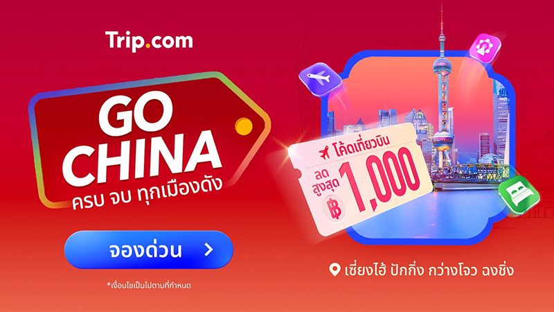 สำหรับนักท่องเที่ยวที่วางแผนจะไปเที่ยวประเทศจีนในปีนี้ Trip.com ได้เปิดตัวแคมเปญพิเศษประจำปี “Go China” ซึ่งจะนำเสนอโปรโมชั่นพิเศษสำหรับการจองเที่ยวบิน โรงแรม และตั๋วเข้าชมสถานที่ท่องเที่ยวยอดนิยมทั่วประเทศจีน โดยโปรโมชันเหล่านี้จะมีให้บริการทุกวันอังคารตลอดปี 2568 โดยมีข้อเสนอโปรโมชั่นที่แตกต่างกันในแต่ละเดือน เพื่อให้คุณสามารถสัมผัสประสบการณ์การเดินทางไปยังประเทศจีนที่สะดวกและคุ้มค่าที่สุด สำหรับข้อมูลเพิ่มเติม เยี่ยมชม Trip.com หรือคลิก th.trip.com/sale/w/19280/gochina.html
