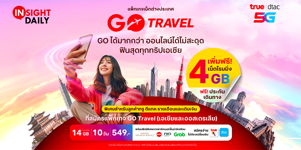 GO Travel ให้ลูกค้าทรู ดีแทค GO ได้มากกว่า! ฟินสุดทุกทริปทั่วเอเชียและออสเตรเลีย ฟรี! เน็ตโรมมิ่ง 4GB วันนี้- 15 ม.ค. ปีหน้า