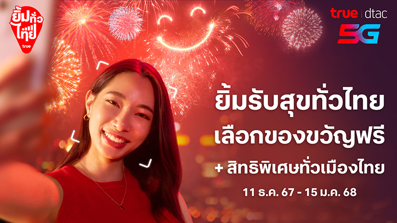 - ปีใหม่นี้ แค่ยิ้มก็รับของขวัญฟรีทั่วไทย… ‘ยิ้มรับสุขทั่วไทย’ ของขวัญฟรี! แค่สแกนยิ้มก็รับความสุขได้ง่าย ๆ รับทันที ไม่มีค่าใช้จ่ายเพิ่มกับบริการทรู ไซเบอร์เซฟ ปกป้องภัยไซเบอร์ แจ้งเตือน เมื่อลูกค้ากดลิงก์อันตราย และรับฟรี! ไอศกรีมโคน McDonald’s หรือ เน็ต 5GB นาน 3 วัน พร้อมดีลอิ่มช้อปสุดคุ้ม ส่วนลดสูงสุด 50% จากแบรนด์ดังมากมาย! พิกัด >> privilege.trueid.net/articles/VRYoD2eJGanZ