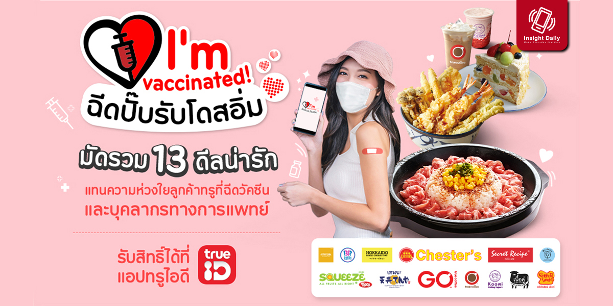 ลูกค้าทรู #ฉีดวัคซีนแล้ว อิ่มกับ 13 ร้านดัง รับส่วนลด หรือ ซื้อ 1 ฟรี 1 #Vaccinated
